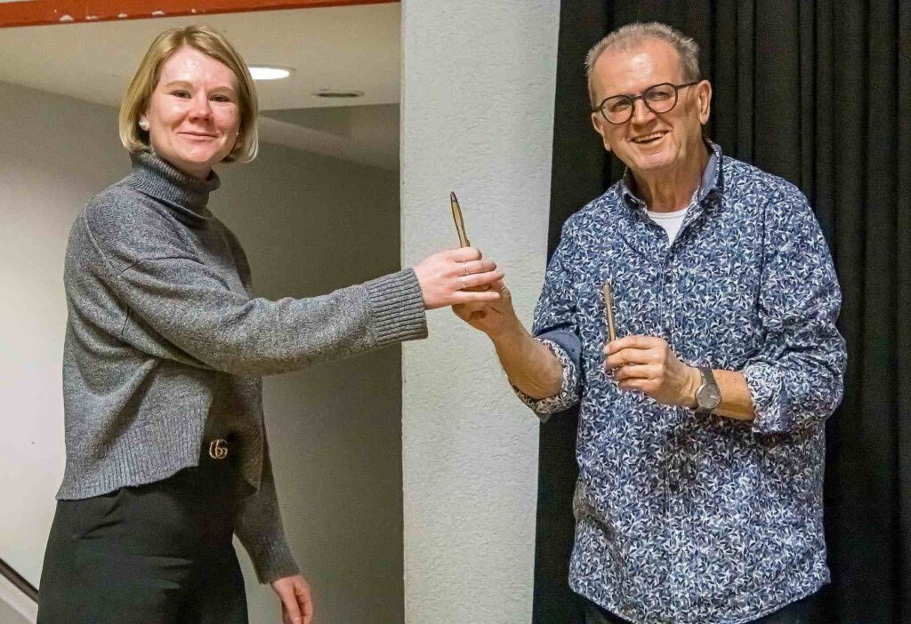 Pia Schlüter ist ab sofort neu im Vorstandsteam des TSV. Als Schriftführerin wird sie hauptsächlich mit den Protokollen und der vielfältigen Pressearbeit zu tun haben. Sie ist ja im TSV kein unbeschriebenes Blatt. Als ehemalige Abteilungsleiterin Turnen und aktuelle Übungsleiterin bei den „No Limits“ beweist sie schon seit Jahren ihre Verbundenheit mit dem Verein. Wir wünschen ihr alles Gute für ihre neue Aufgabe. Den „Goldenen Schriftführer Kugelschreiber“ erhielt sie bei der HV symbolisch von Walter Deuble.