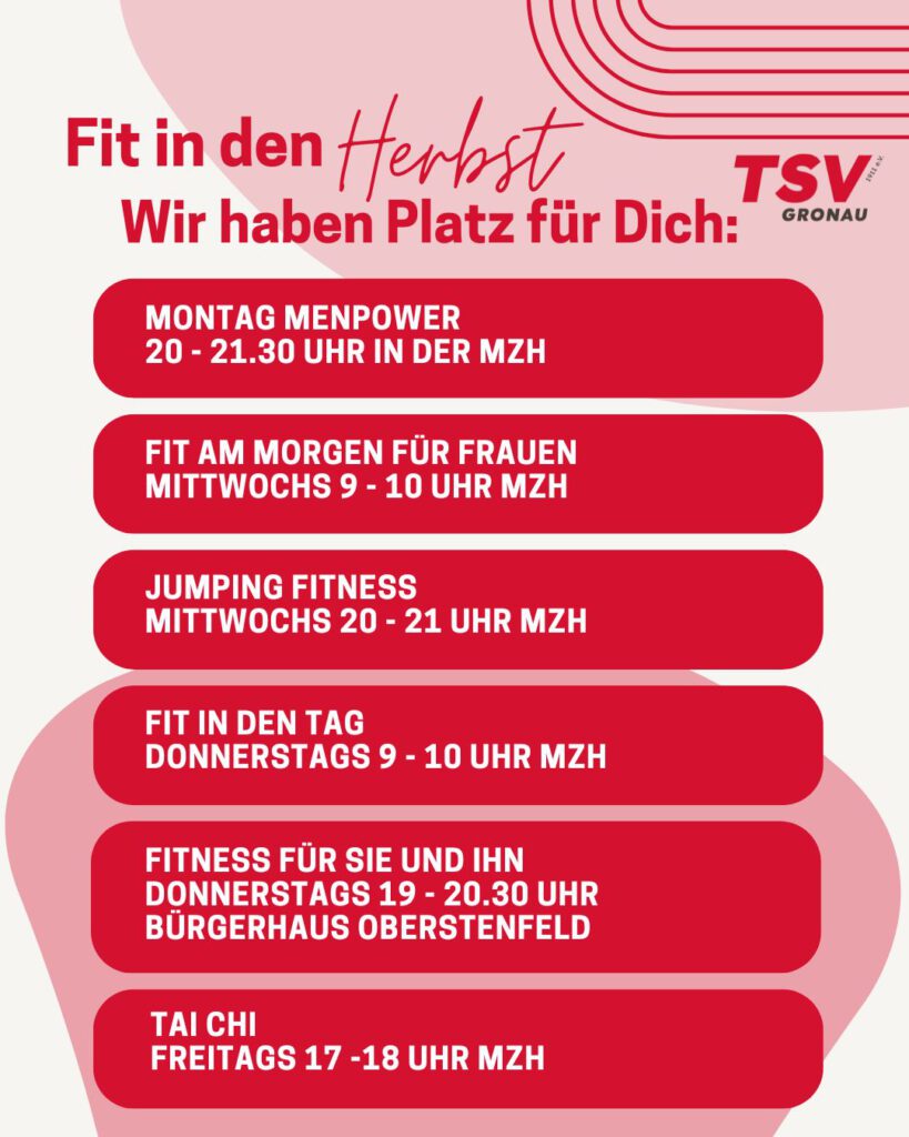 Es gibt noch einige freie Plätze in unseren Kursen und Sportangeboten für Erwachsene und Kinder