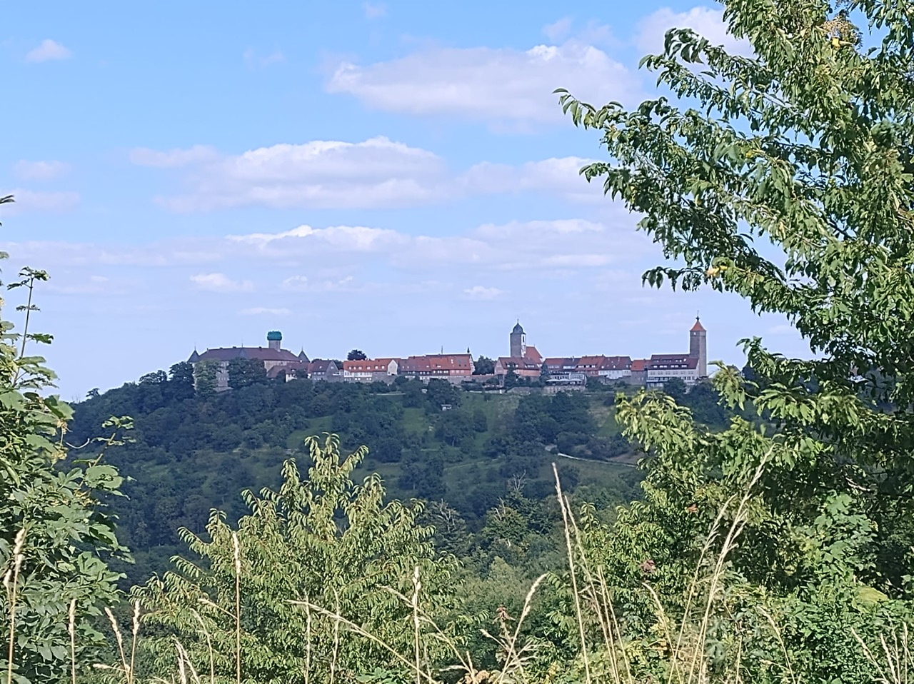 13 Bergsportler und eine Gastwanderin trafen sich am 17. Aug. 2025 in Waldenburg um das Umland zu erwandern. Waldenburg liegt auf einem Bergrücken und bietet grandiose Ausblicke über die Hohenloher Ebene. Nach einer kleinen Stärkung machte sich die Gruppe auf den Weg zum Neumühlsee, ein idyllisch gelegener Stausee mit Bademöglichkeiten, Liegewiesen, Campingplatz und einem Landgasthof. Völlig unerwartet kamen wir am Ortsausgang in eine Schlepperparade, als über hundert Bulldogs zum Treffpunkt in der Ziegelhütte unseren Weg kreuzten. So schön die alten Trecker anzusehen waren, die Luft passte nicht mehr zum Luftkurort Waldenburg. Als man am Trekker-Sammelplatz vorbei war, konnte der Weg auf geschotterten Waldwegen bei herrlicher Waldluft fortgesetzt werden. Am Neumühlsee angekommen wurde im Landgasthof Mittagspause gemacht, mit Kaffee und einer herrlichen Kuchenauswahl. So gestärkt wanderte die Gruppe an der anderen Uferseite in Richtung Obersöllbach, kurzzeitig entlang einer Teerstraße, dann aber überwiegend auf Forststraßen und Waldpfaden. Dabei führte der Weg auch über eine Zugangsstraße zu einem Baufeld für ein neues Windrad. Man erschrickt, wenn man sieht, wieviel Bäume dafür gefällt werden mussten. Weiter wanderte die Gruppe zum Albert Schweitzer Kinderdorf und dann über den Panoramaweg zurück zum Ausgangspunkt. Dabei gab es ständig tolle Aussichten auf die markante Silhouette der Stadt. Ein Kleinod auf dem Weg war noch ein gemauertes Sofa, verziert im Stile des Künstlers Hundertwasser. Nach einem gemütlichen Abschluss im Nachbarort Neuenstein wurde die Heimfahrt angetreten. Ein großer Dank gilt unseren beiden Organisatoren, die diese Wanderung ausgestaltet haben.